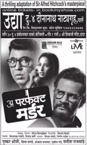 Drama Shows Must Read अ परफेक्ट मर्डर मराठी नाटकाचे प्रयोग – २३ नोव्हेंबर ते ३०नोव्हेंबर २०१९ November 23, 2019November 23, 2019 Natakcinema 0 Comments Post Views: 1,208 अ परफेक्ट मर्डर मराठी नाटकाचे प्रयोग – २३ नोव्हेंबर ते ३०नोव्हेंबर २०१९ A perfect Murder Marathi Natak Shows – 23rd Nov. to 30th Nov.2019 Mumbai Shows