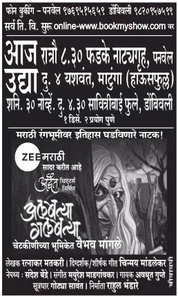 अलबत्या गलबत्या मराठी नाटकाचे मुंबईतील प्रयोग – २३ नोव्हेंबर ते ३० नोव्हेंबर २०१९