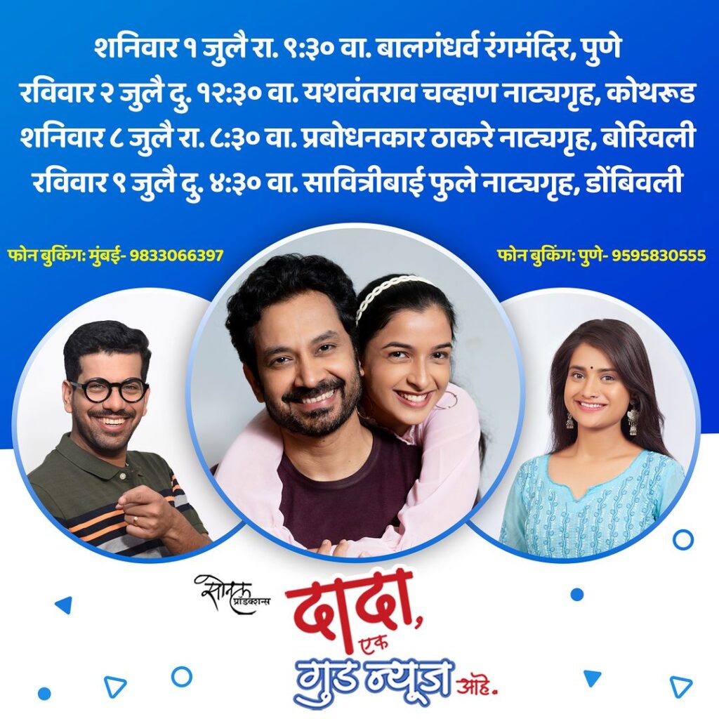 ‘दादा एक गुडन्युज आहे’ मराठी नाटक या आठवड्यातील प्रयोगांचे वेळापत्रक | Natakcinema.com